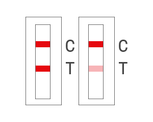 В случае, если линия контроля качества C не проявляется, результат будет являться недействительным, независимо от того, проявится ли линия обнаружения (как показано на рисунке ниже); тестирование необходимо будет провести заново.