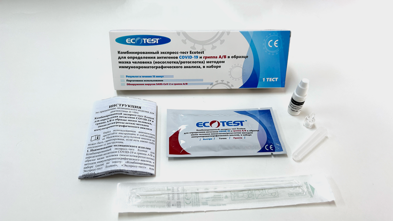 MI-S43001-20 ИХТ «Ecotest» для определения антигенов COVID-19 и гриппа А/B в рото-и носоглотке